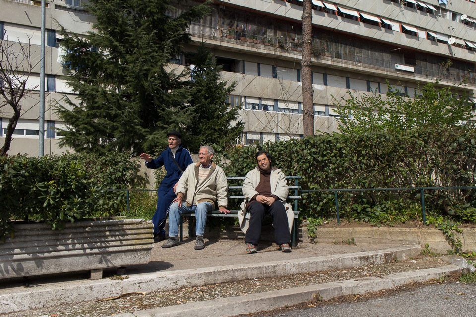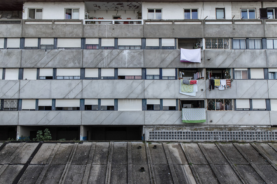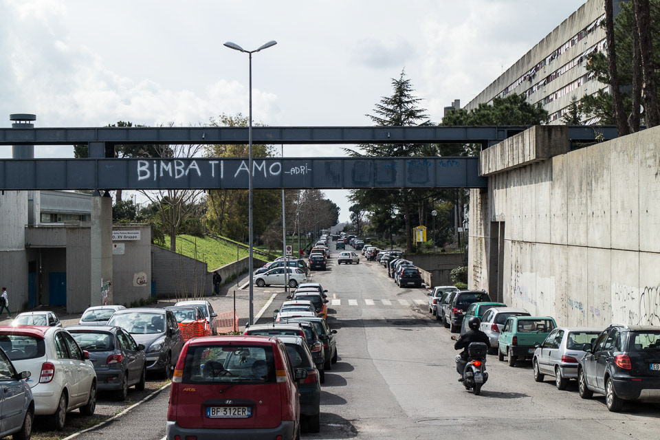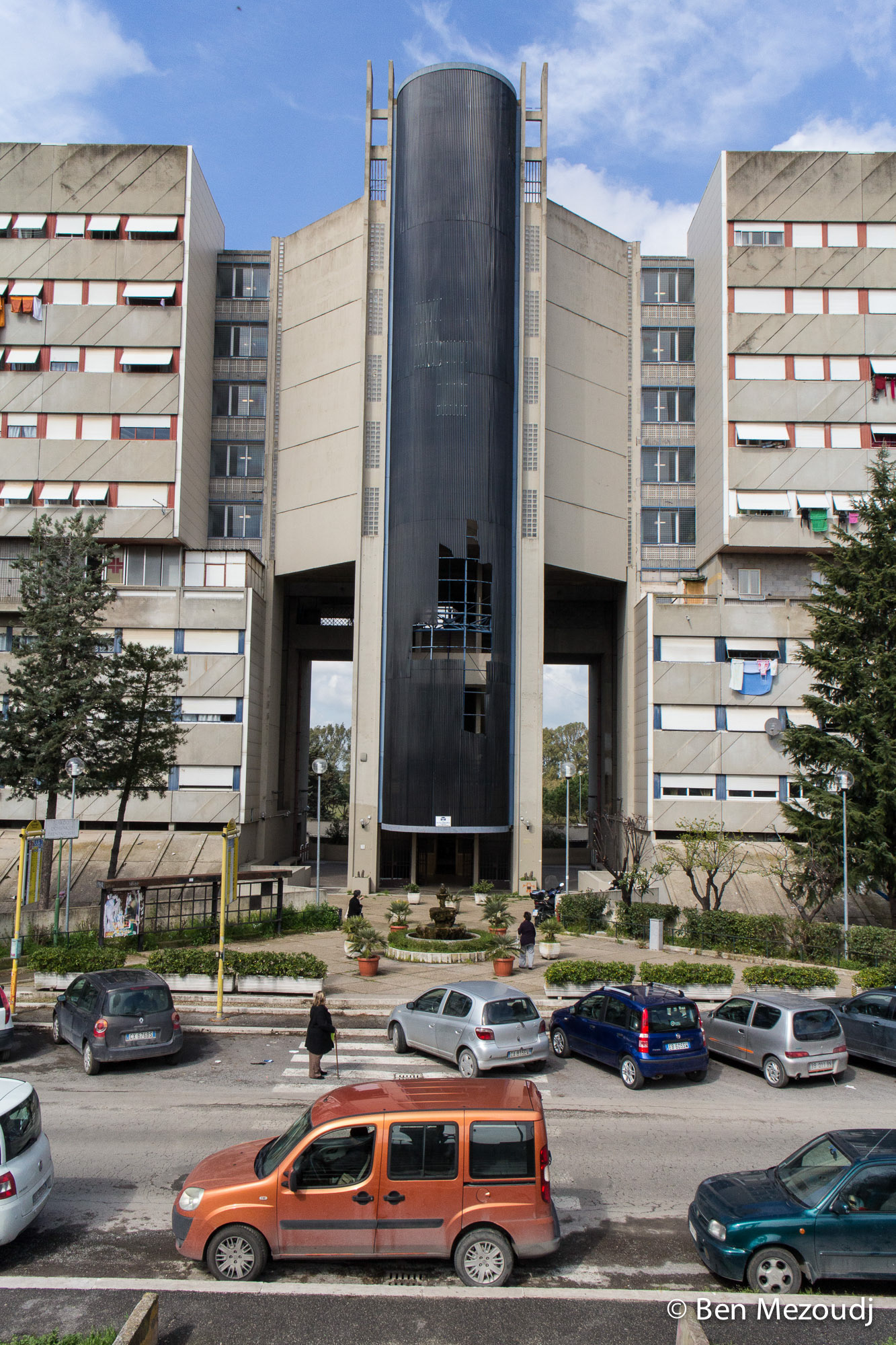 Nuova Corviale ist das größte bewohnte Hochhaus Europas. Es ist 958 Meter lang und 11 Stockwerke hoch – davon 9 über der Erde -. Es gibt hier 1202 offizielle und wohl an die 300 illegale Wohnungen, niemand weiß das so genau. Geplant und entworfen wird Corviale zwischen 1969-73, die Architekten unter der Leitung von Mario Fiorentino sind ambitioniert und inspiriert durch die „unité d´habitation“ von Le Corbusier und dessen Leitbild von der „vertikalen Stadt“.