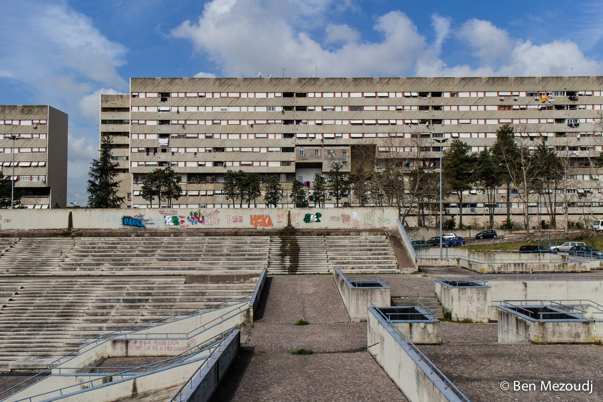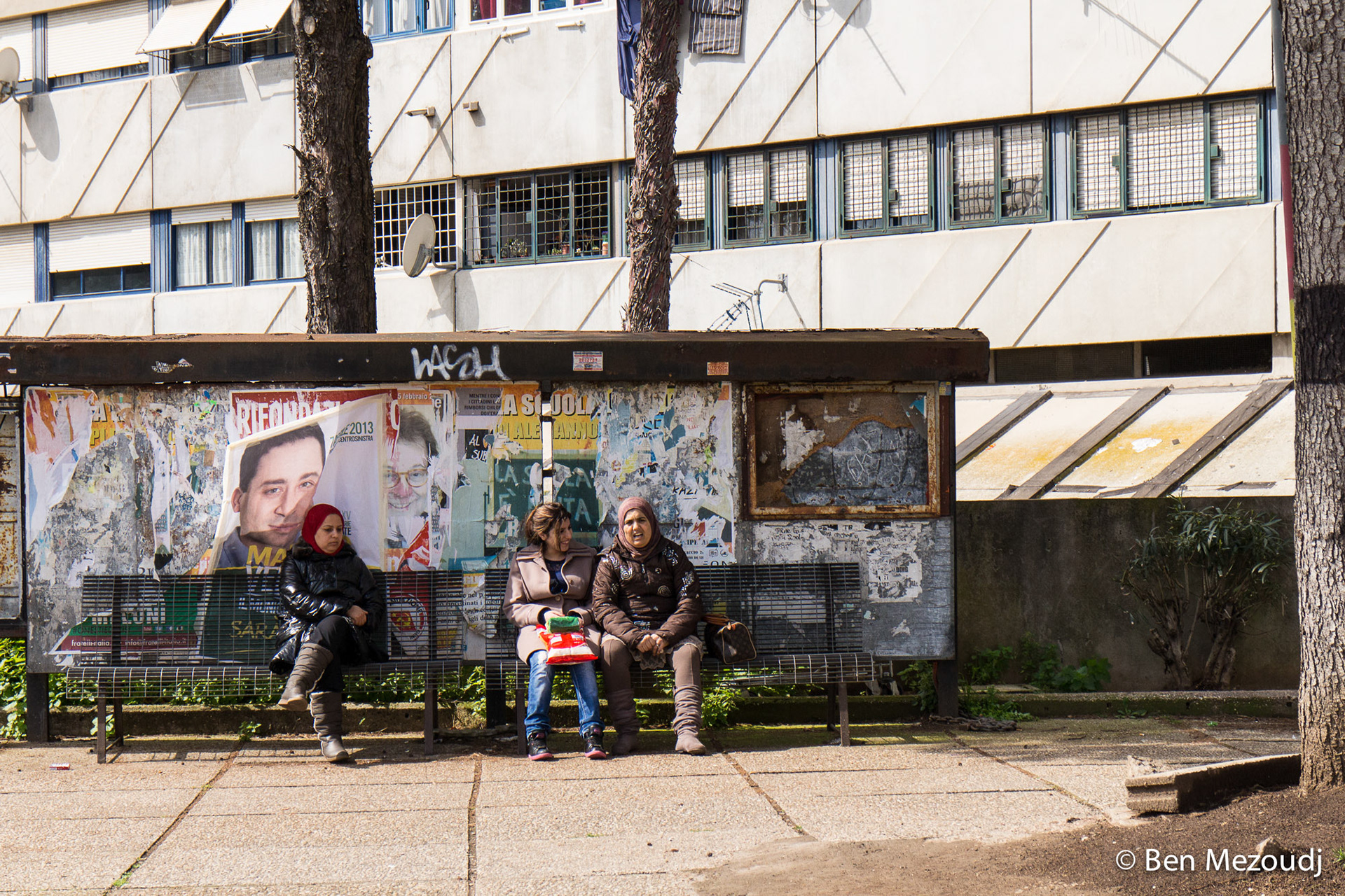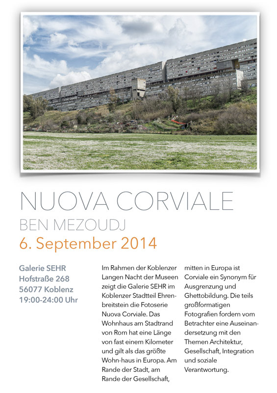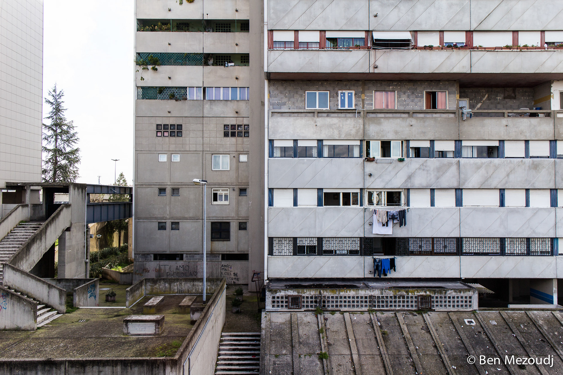 Die teils großformatigen Fotografien von Ben Mezoudj geben dem Betrachter einen unmittelbaren Eindruck davon, was es heißt, an so einem Ort zu leben und stellen Fragen zu sozialer Integration und gesellschaftlicher Verantwortung.